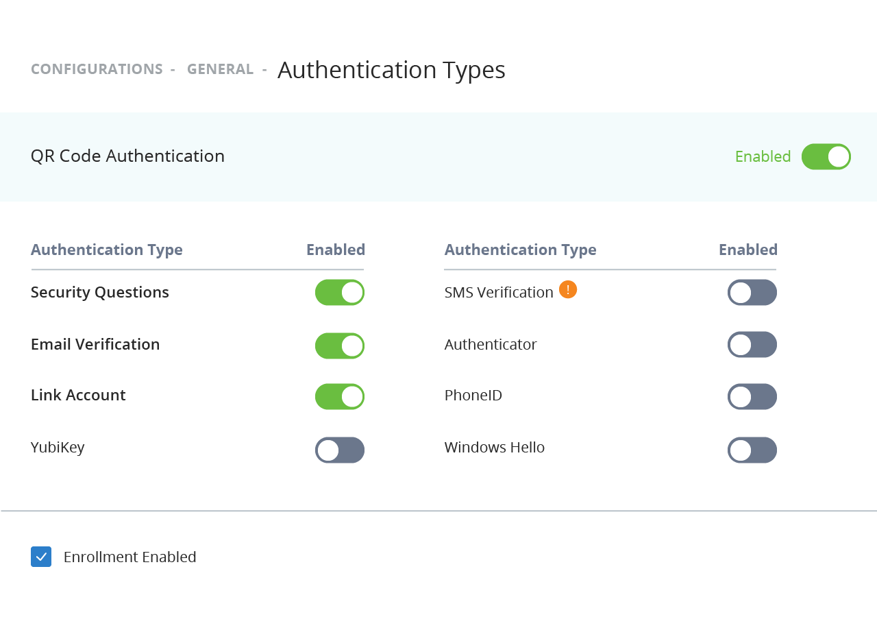 Choose between security questions, SMS verification, email verification, Google Authenticator, Microsoft Authenticator, PhoneID, Yubikey and Windows Hello for secure access.