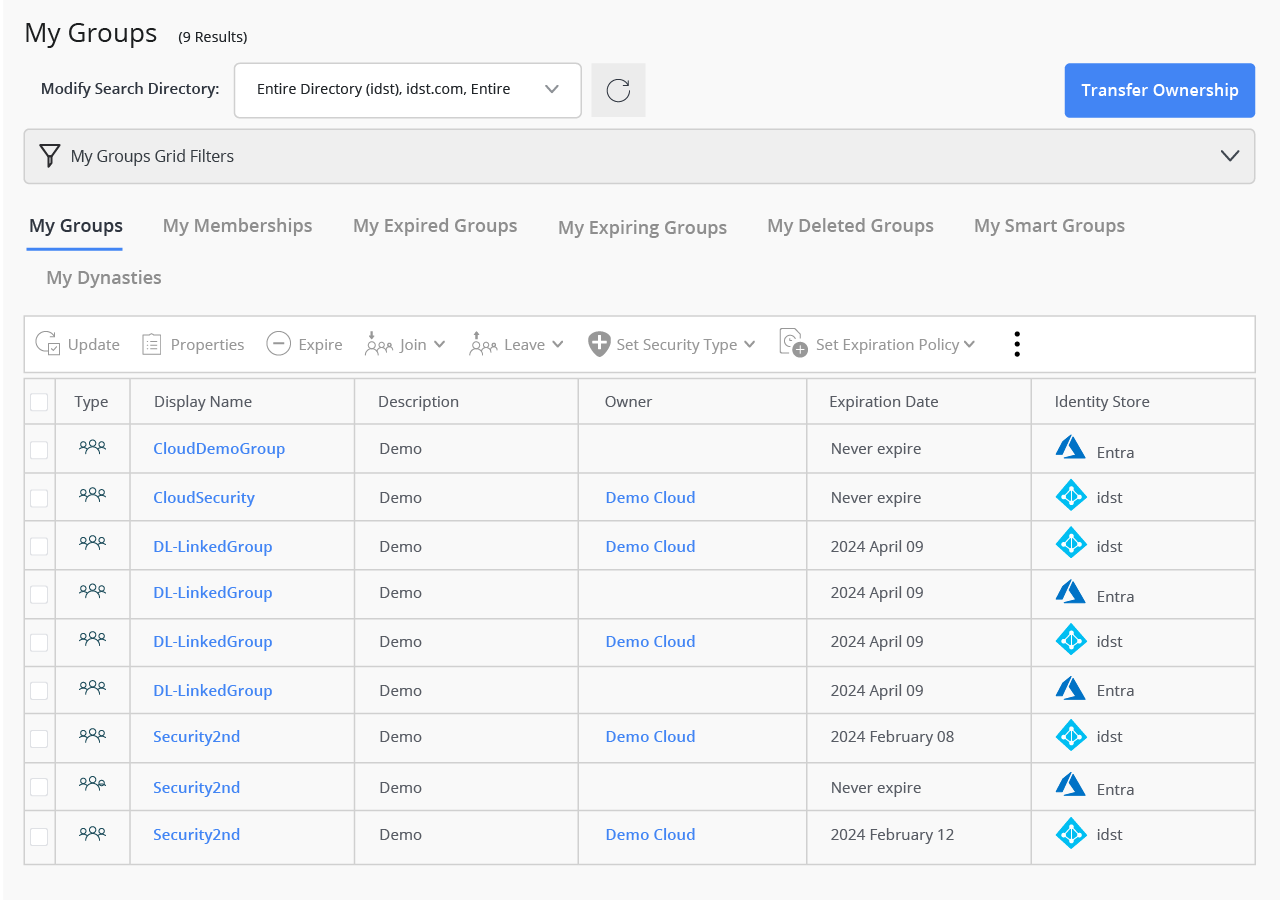 Easily manage groups across multiple directory services in one interface without extra authentication.